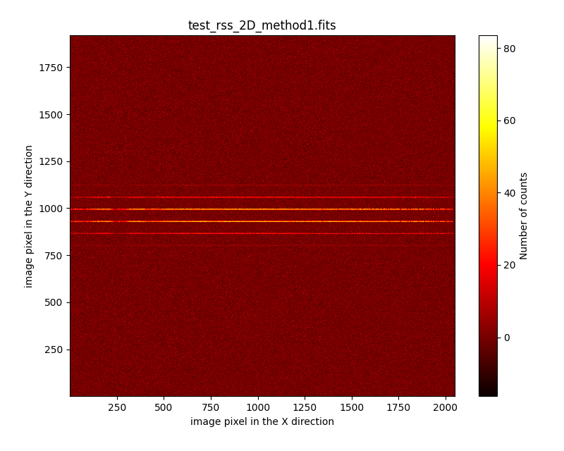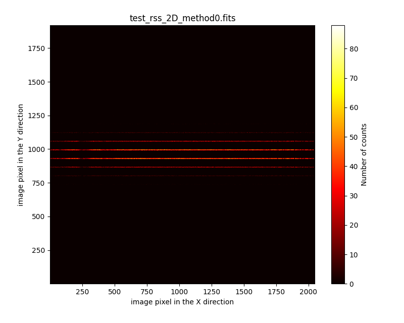Reconstructed RSS image from the observed image on the Hawaii detector, taking into account the geometric distortions of the image. This tests the procedure that will be applied in the FRIDA pipeline based on real observations.